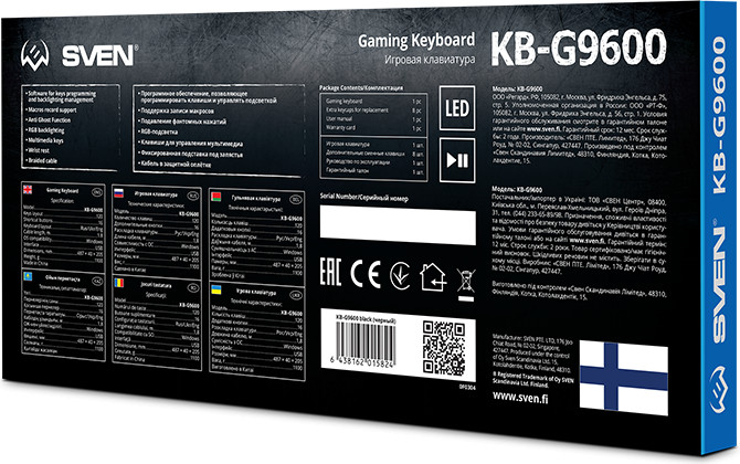 Клавиатура Sven KB-G9600 — полноценный игровой девайс для любителей виртуальных баталий. Тяжелая, устойчивая модель не двигается по столу. Модель от Sven умеет делать все самое нужное — у нее есть 6 дополнительных программируемых клавиш, возможность записи до 18 макросов и специальные мультимедийные клавиши. Фиксированная подставка под запястья обеспечивает удобное, физиологически комфортное положение рук при игре.