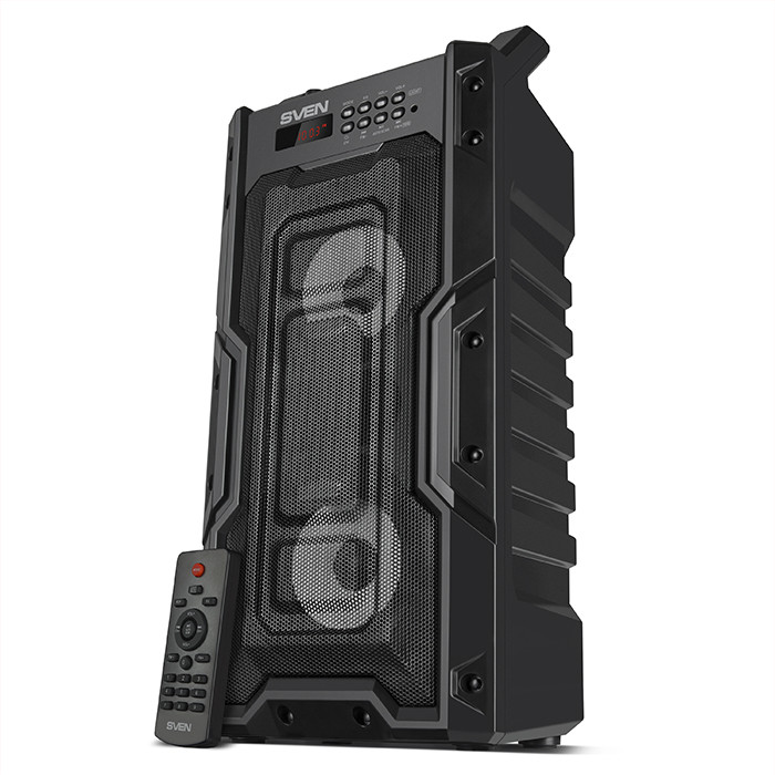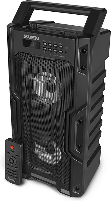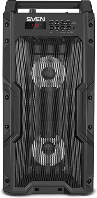 Воспроизведение звука осуществляется двумя динамиками диаметром 95 мм, позволяющим колонке работать в довольно широком для портативного устройства частотном диапазоне и обеспечивать высокое качество звучания. Настроить звук под свой вкус поможет встроенный эквалайзер. Мощность музыкального центра — 20 Вт, звучит он гораздо громче, чем многие ожидают от столь компактного решения. Его возможностей хватит для вечеринки на пару десятков человек. А если слушатели захотят еще больше громкости и объема, можно подключить по Bluetooth сразу две Sven PS-435 к одному источнику звука.