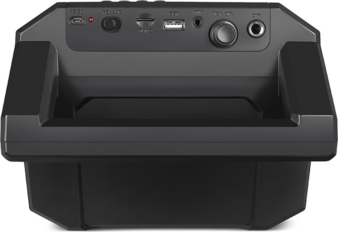 Также поддерживается проводное подключение и воспроизведение с USB-flash и microSD, плюс присутствует встроенное FM-радио — ваша вечеринка точно не останется без музыки. Управлять воспроизведением можно не только посредством кнопок на передней панели, но и с помощью пульта дистанционного управления. Информация о текущем режиме работы отображается на LED-дисплее, а благодаря использованию сразу двух литий-ионных аккумуляторов по 2000 мAч слушатели могут рассчитывать на внушительную автономность. Ну и, конечно, нельзя не сказать про эффектную разноцветную подсветку, которая поможет в создании праздничной атмосферы.