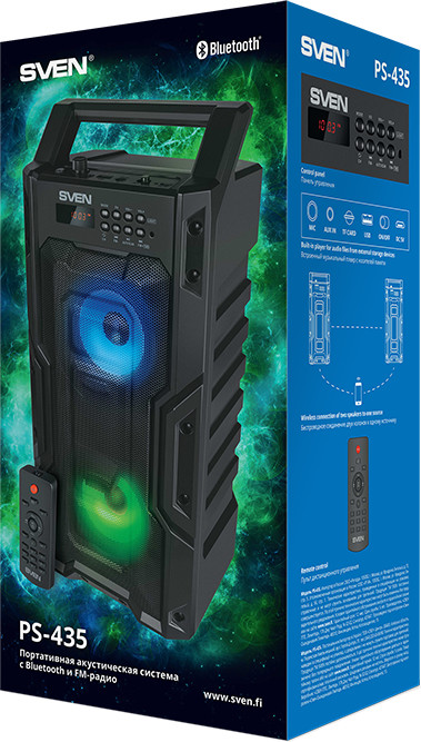 Портативная акустика Sven PS-435 — идеальный вариант для тех, кто ищет универсальное, но компактное решение для озвучивания вечеринок дома и на свежем воздухе. Его уже можно приобрести в магазинах бытовой техники и электроники. |