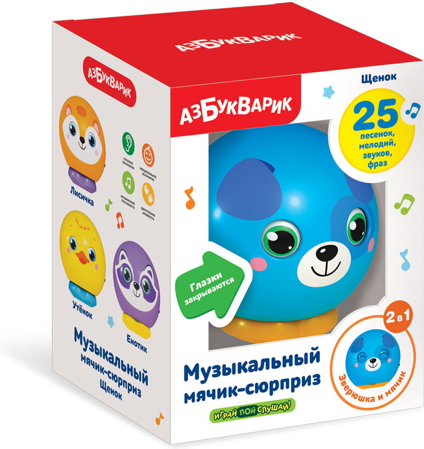 Азбукварик Мячик музыкальный «Щенок»В данный момент этот товар отсутствует в продаже. Возможно, у нас найдется аналогичный или похожий товар здесь. Вот так сюрприз! Музыкальный мячик-зверюшка «2 в 1» — забавный щенок. Нажми на него — щенок спрячет ножки, закроет глазки — и превратится в мячик! Покатай его — щенок-мячик будет петь и говорить! Слушай веселые песенки и мелодии, забавные звуки и фразы. |
