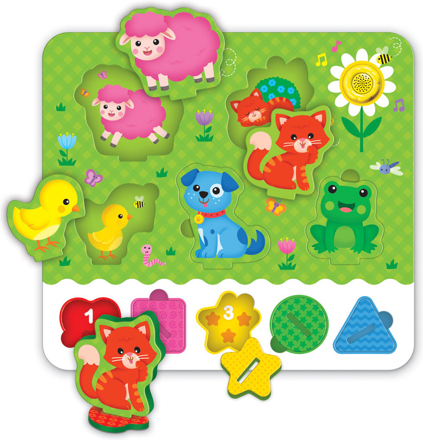 Азбукварик Пазл музыкальный «Забавные зверята»В данный момент этот товар отсутствует в продаже. Возможно, у нас найдется аналогичный или похожий товар здесь. Серия: Музыкальные пазлы Забавные зверята — это развивающие пазлы-вкладыши для малышей, игрушка-сортер. С такими пазлами можно придумать множество увлекательных и познавательных игр! Малыш познакомится с животными, выучит формы, цвета и цифры. Ребенку будет интересно найти для каждой зверюшки или геометрической фигурки свое место — для этого надо вставлять фигурки в подходящие окошки. В геометрических фигурках есть прорези — это подставки для зверюшек. Подобрать для каждой зверюшки подставку по цвету — вот еще одна интересная задачка для ребенка! А когда зверюшки будут установлены на подставки — получатся 3D-фигурки, с которыми можно устроить настоящее представление. |