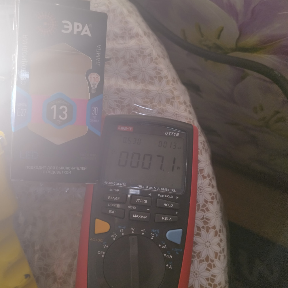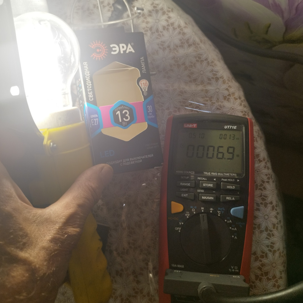 Мощность лампы вместо заявленных 13 Вт, реально в среднем составляет только 7 Вт.