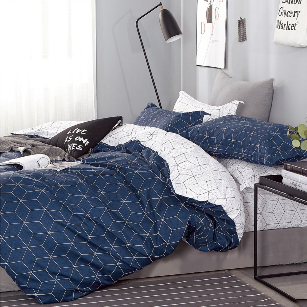 Ткань очень приятная, мягкая и гладкая. Цвет насыщенный тёмно синий, простынь белая с графическим рисунком , расцветка понравилась, соответствует фото. До этого уже покупала постельное бельё сатин от Сайлид, Прекрасный комплект,цвет выдержал всё безумное кол-во стирок:)) у детей.Глажки в принципе и не требовал.