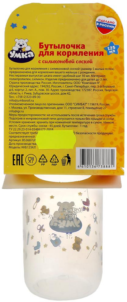УМка Бутылочка для кормленияВ данный момент этот товар отсутствует в продаже. Возможно, у нас найдется аналогичный или похожий товар здесь. Бутылочка для кормления ТМ «УМка» станет прекрасным подарком для малыша. |