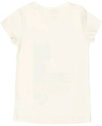 Футболка понравилась своим качеством. При глажке принт остался цел. Практически не мнется, что для меня важно. Дочке нравился рисунок кошечки. По размеру взяли на 2 года, хотя дочка пухляшка и ей полтора сейчас. Так что размер идет в соответствии с таблицей. Она очень нежная и приятная к телу - доча очень любит эту коллекции она яркая стильная