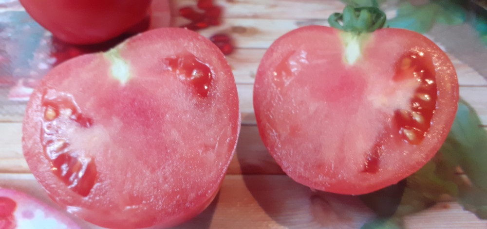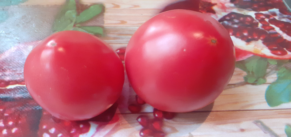 Плоды крупные, мясистые, розовые. на вкус сладкие. Очень понравились. Ничем не болели.Развивались немного дольше других, делаю вывод, что сеять надо пораньше. Буду заказывать ещё, рекомендую