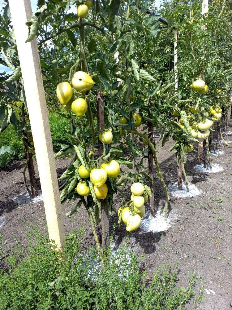 Томаты понравились, замечательные по вкусу, мясистые, сахаристые, в сильную жару подверглись вершинной гнили и плохо завязывают в такую погоду. Не растрескиваются. Из них получаются отличные соусы, томат, салаты. Буду садить ещё.