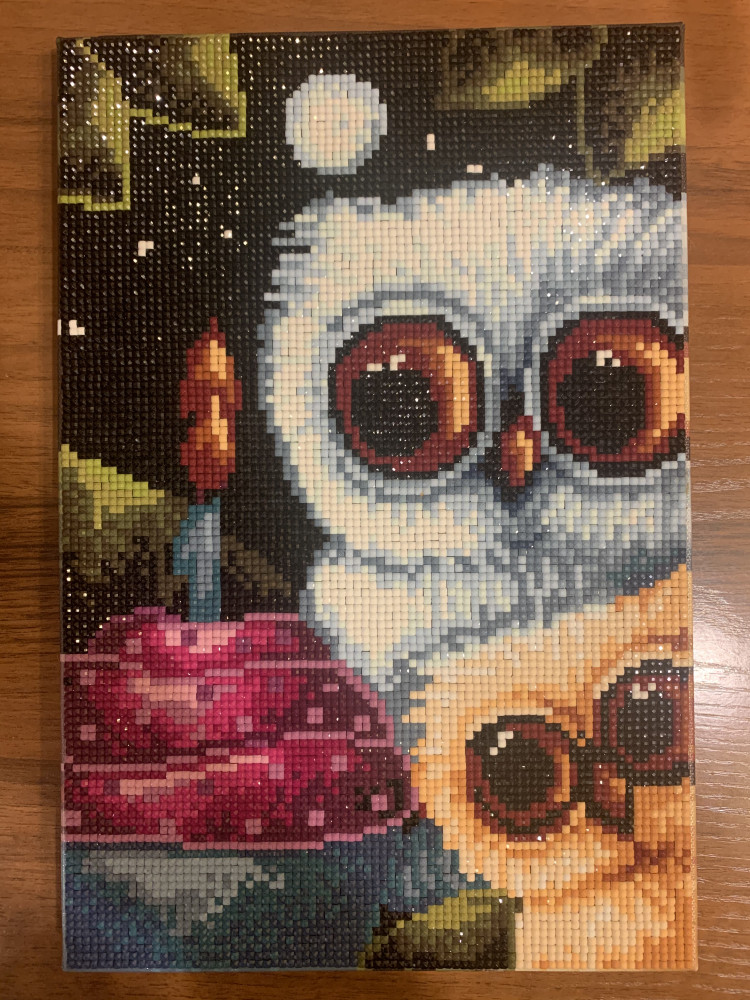 Картина получилась очень красивой! Стразы переливаются на свету. Подрамник и холст хорошие, страз предоставлено с запасом. Есть одно НО, светлые стразы кажутся некоторые немного меньше по размеру, потому что я брала 2 картины такой серии и в первой картине не было зазоров между стразами, а вот в этой зазоры видны, а так же светлые некоторые стразы плохо обработанные по краям