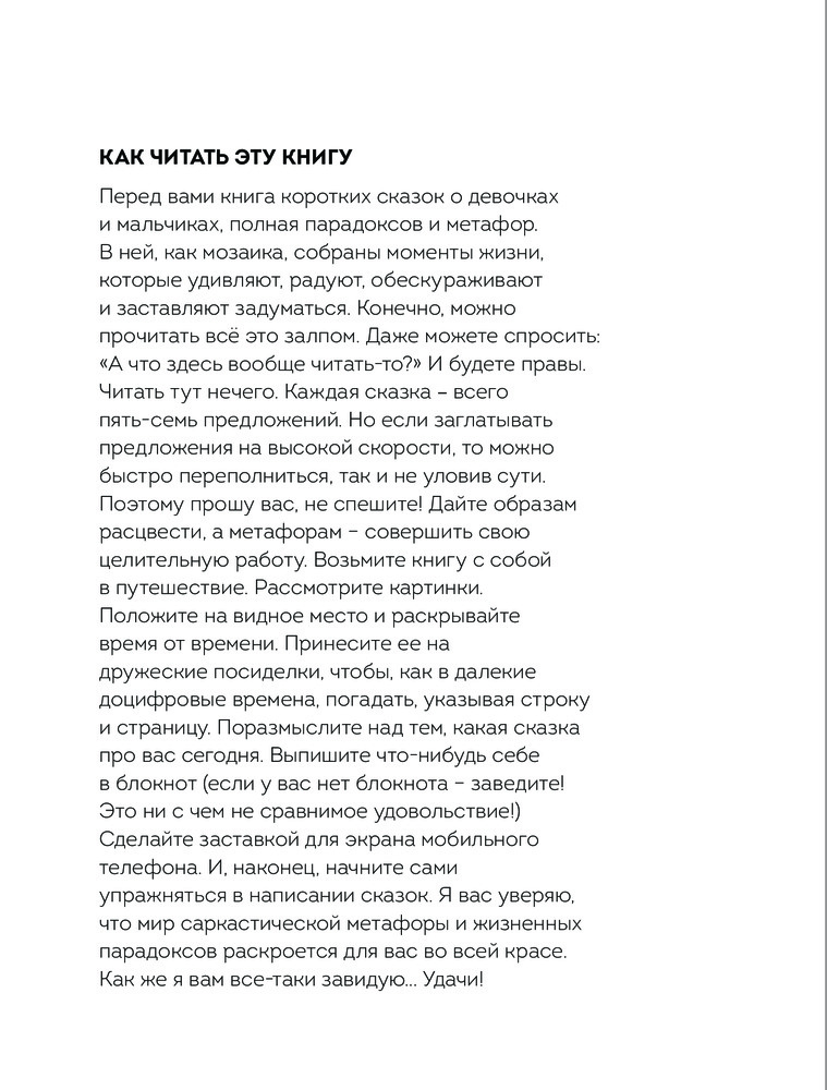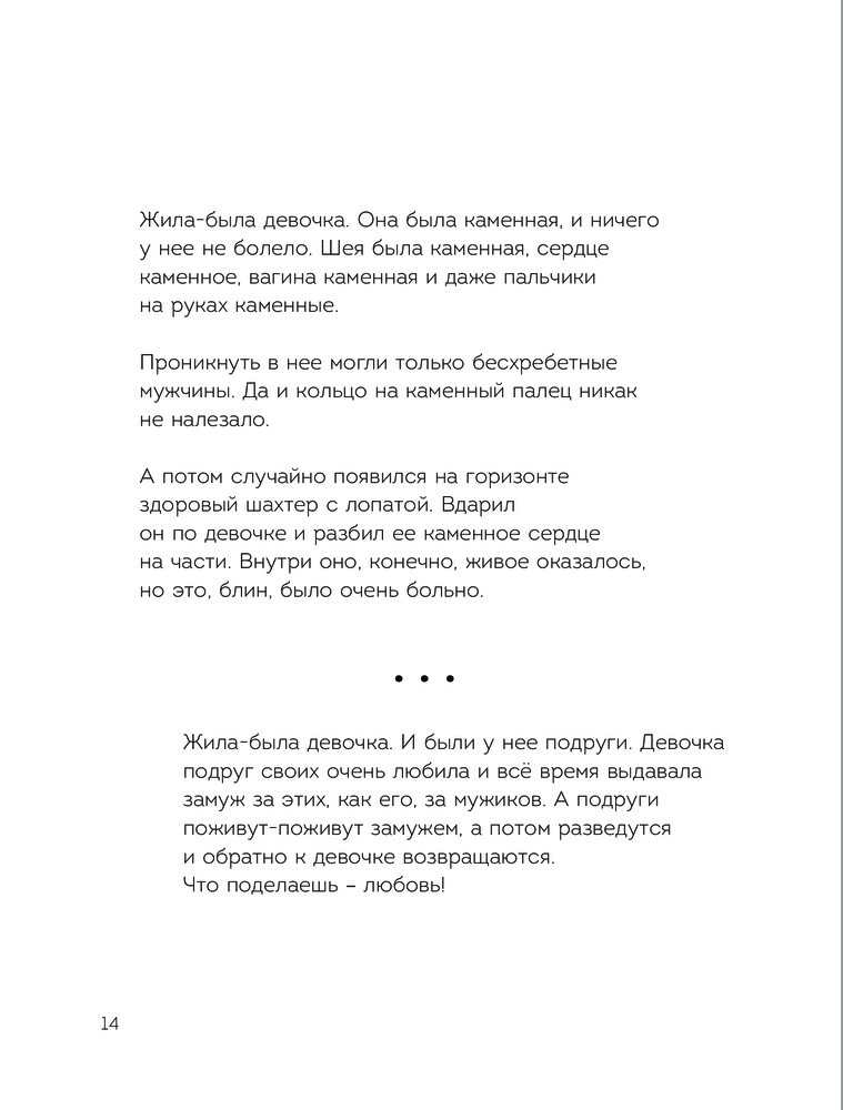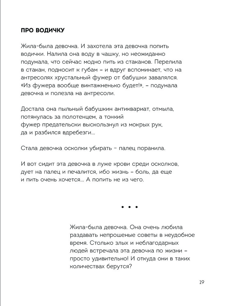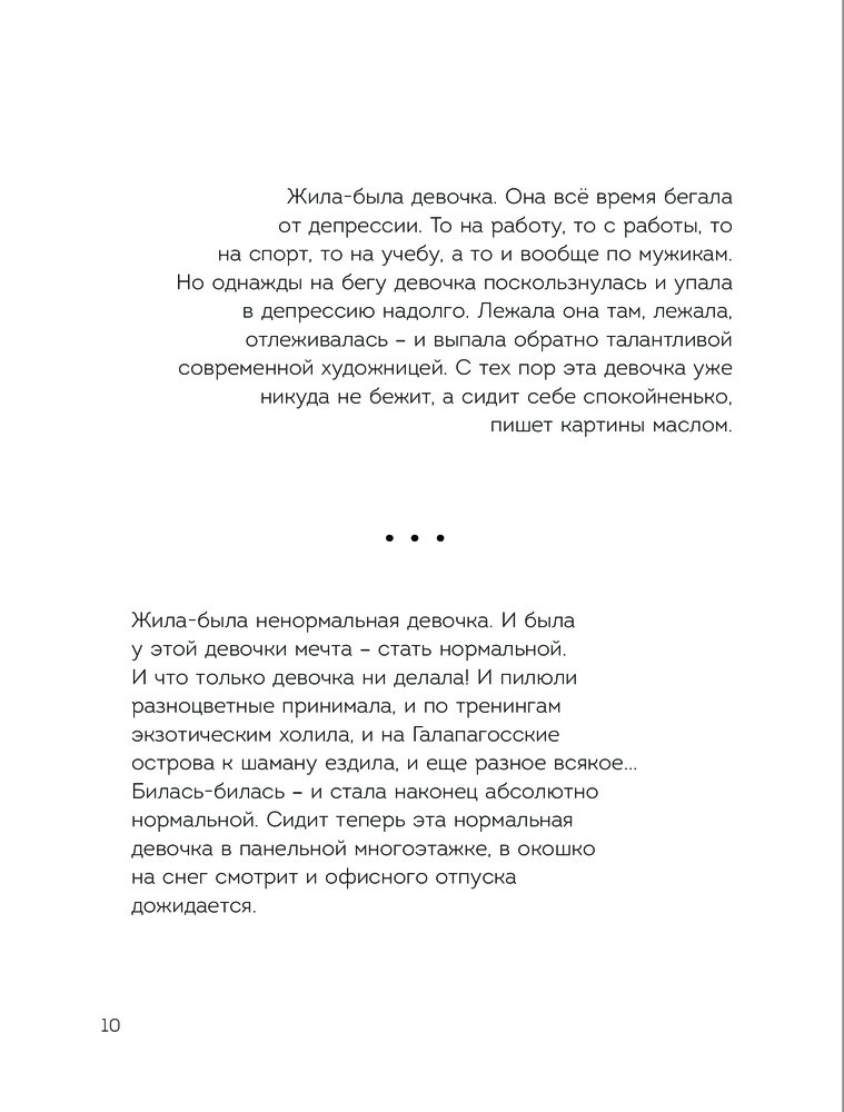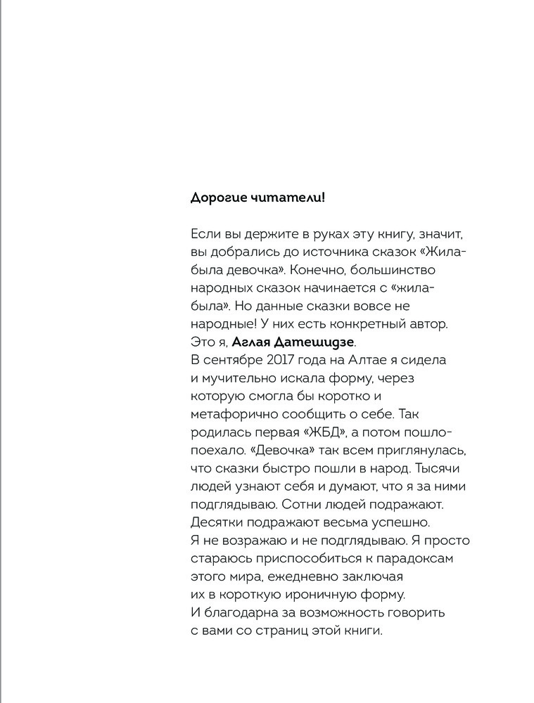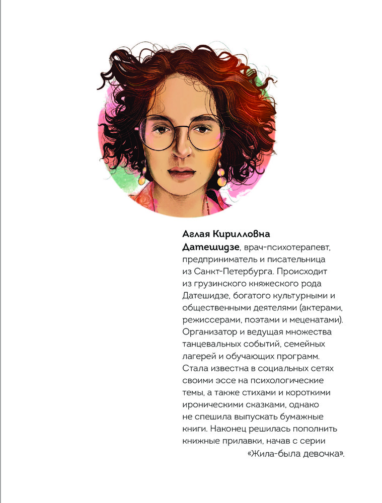 Жила-была девочка. Короткие истории, которые помогут понять себяВ данный момент этот товар отсутствует в продаже. Возможно, у нас найдется аналогичный или похожий товар здесь. Серия: Искры вдохновения. Книги, которые исполняют желания Перед вами сборник коротких терапевтических сказок «Жила-была девочка». В героине сказок каждый может узнать себя, так как они полны метафор. Наверняка вы наталкивались на эти короткие тексты как на больших ресурсах (таких как adme.ru), так и на маленьких. Возможно, у вас даже сложилось впечатление, что это народное творчество. Но, несмотря на такое ощущение, у сказок есть конкретный автор. Этот автор я, Аглая Датешидзе. В сентябре 2017 года на Алтае я сидела и мучительно искала форму, через которую смогла бы коротко и метафорично сообщить о себе. Собрать моменты жизни, которые удивляют, радуют, обескураживают и заставляют задуматься. Так родилась первая «ЖБД», а потом пошло-поехало. |