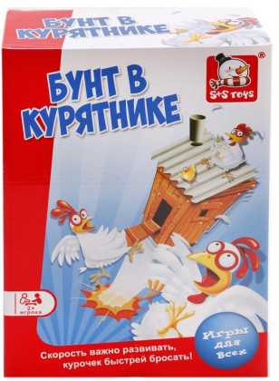 S+S TOYS Игра настольная «Бунт в курятнике»В данный момент этот товар отсутствует в продаже. Возможно, у нас найдется аналогичный или похожий товар здесь. «Бунт в курятнике» — это интересная настольная игра, рассчитанная на 2-х и большее количество игроков. Игра развивает ловкость и скорость реакции. До начала игры курятник нужно установить в центре стола, а курочек разного цвета разделить поровну между игроками. Далее один из участников должен бросить кубик. Цвет, выпавший на игровом кубике, означает цвет курочки, которую необходимо закинуть в курятник. Движения должны быть быстрыми и ловкими, ведь курятник может неожиданно подпрыгнуть вверх! Победителем становится участник, скинувший всех своих курочек первым. |