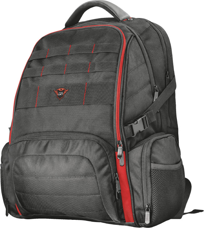 Рюкзак для ноутбука Trust GXT 1250 Hunter Gaming — 5 специальных карманов для безопасной транспортировки клавиатуры, мыши, наушников, планшета и прочих аксессуаров. Регулируемая застежка на груди, мягкие лямки и задняя стенка с вентиляцией обеспечивают повышенный комфорт. Надежный игровой рюкзак для ноутбуков диагональю 17,3″ и периферийных устройств. Водостойкое дно и встроенный водонепроницаемый чехол для защиты от дождя. Потайной карман на задней стенке для ценных вещей. 2 малых боковых кармана для быстрого доступа. Металлические молнии.