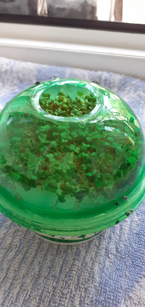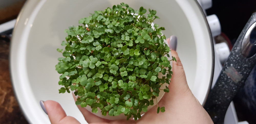 Все взошло. На 7й день результат на фото. Вкусно. Очень просто вырастить без лишних заморочек. Единственное, мало, покушать на 1 раз.