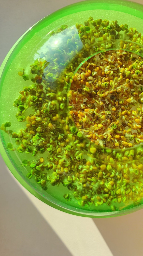 Замечательные "витаминки" вырастают! 5-го марта вечером заложила семена, за ночь корешки стали проклевываться, а 8-го марта порадовала зелёными листочками 😊