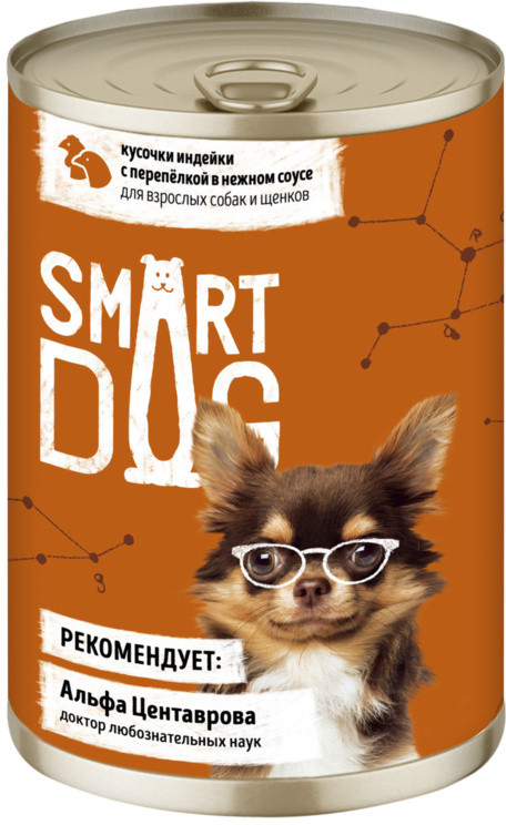 Smart Dog Консервы для собак с кусочками индейки и перепелки в нежном соусе