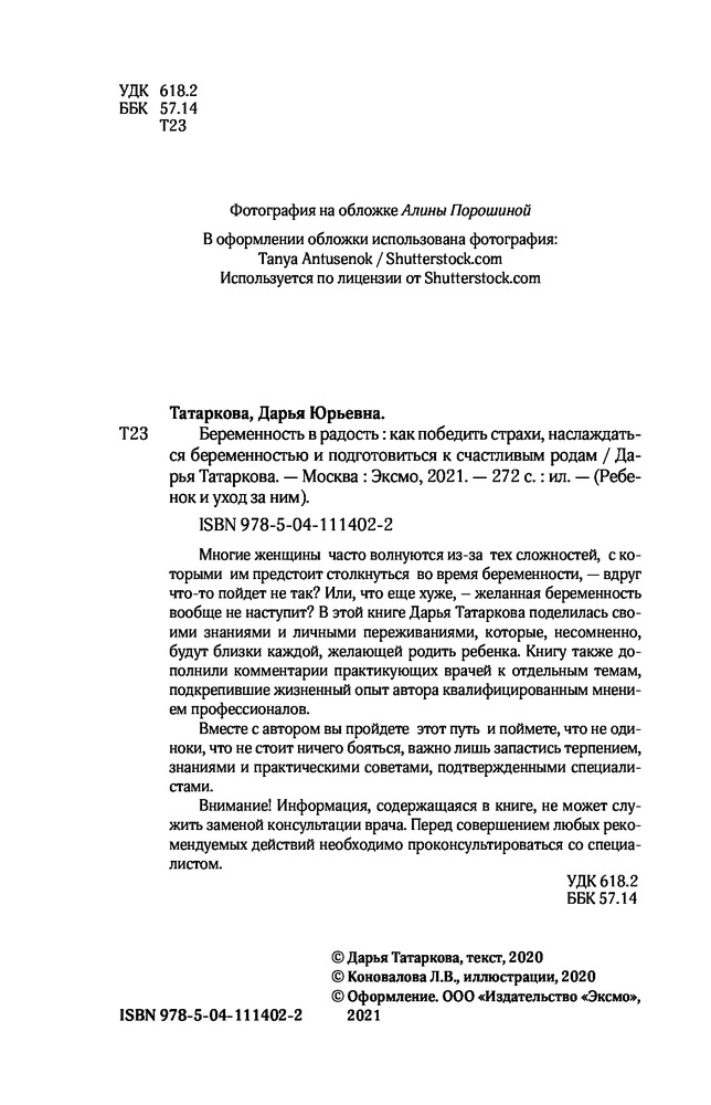 Беременность в радость. Как победить страхи, наслаждаться беременностью и подготовиться к счастливым родамВ данный момент этот товар отсутствует в продаже. Возможно, у нас найдется аналогичный или похожий товар здесь. Серия: Ребенок и уход за ним Многие женщины часто волнуются из-за тех сложностей, с которыми им предстоит столкнуться во время беременности — вдруг что-то пойдет не так? Или, что еще хуже, — желанная беременность вообще не наступит? В этой книге Дарья Татаркова поделилась своими знаниями и личными переживаниями, которые, несомненно, будут близки каждой, желающей родить ребенка. Книгу также дополнили комментарии практикующих врачей к отдельным темам, подкрепившие жизненный опыт автора квалифицированным мнением профессионалов. |
