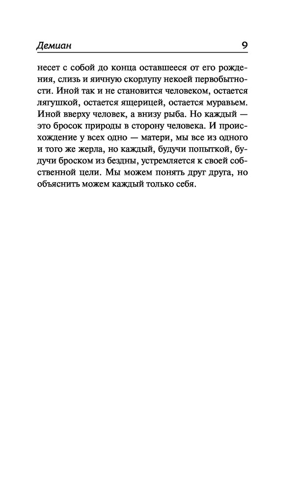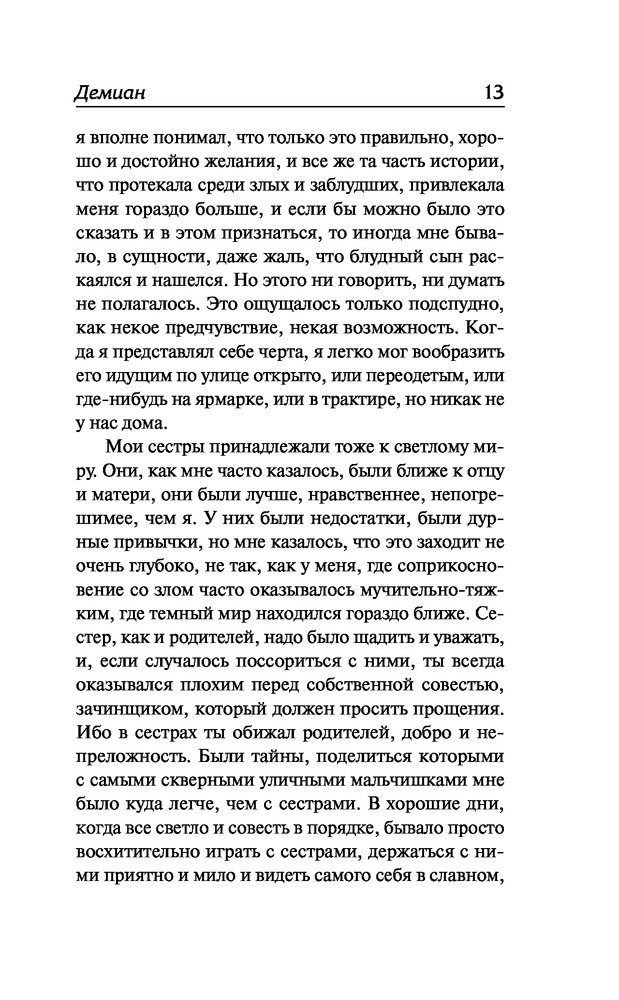 Люблю Гессе. Демиен понравился больше, он темнее и завораживающее, читался быстрее и был ясно перед глазами. Гертруда показалась затянутой, хотя я понимаю, почему многим она нравится больше. Тот самый любовный треугольник, где все могло бы быть по другому, если бы не принципы гг. Демиен на этом фоне имеет конечно более темные и даже духовные краски. В общем, 10/10.