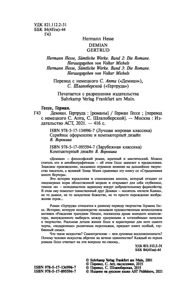Очень хорошо написано. Гертруда понравилось больше чем Демиан. Издание книги очень приятная