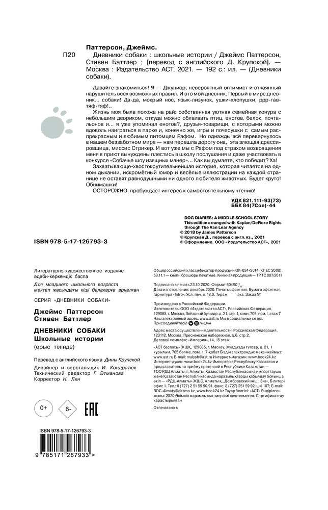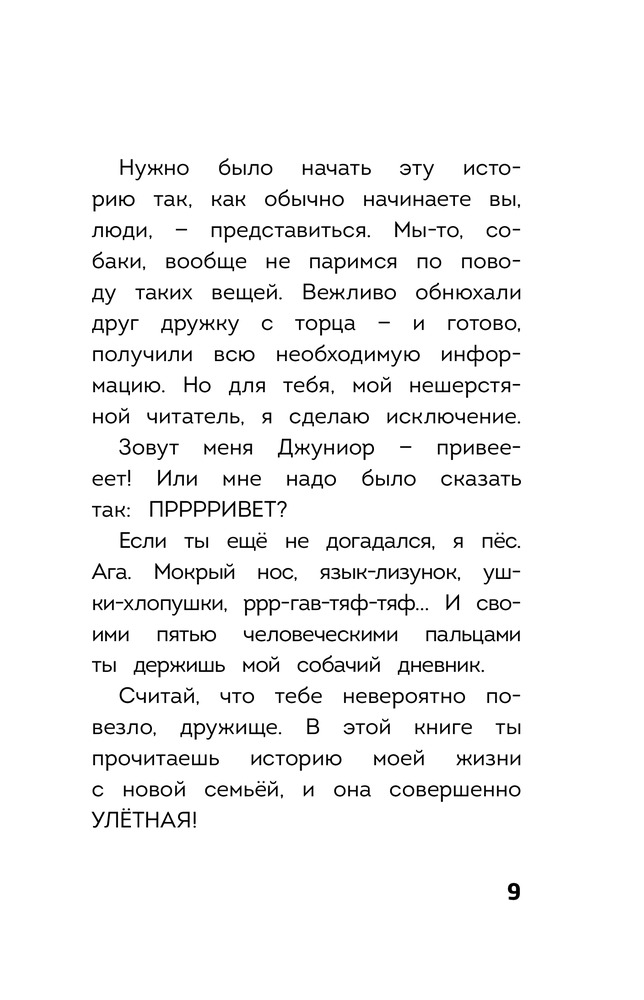 Серия: Дневники собаки Давайте знакомиться! Я — Джуниор, невероятный оптимист и отчаянный нарушитель всех возможных правил. И это мой дневник. Первый в мире дневник ... собаки! Да-да, мокрый нос, язык-лизунок, ушки-хлопушки, ррр-гав-тяф-тяф!..