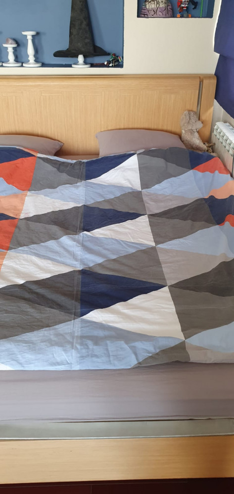 С одной стороны комплект отлично вписался в подростковую комнату, но к сожалению после 3х стирок потерял свой цвет и появились полосы на изломах от стирки. Стирала при 30 градусах с деликатным отжимом на 800 оборотов
