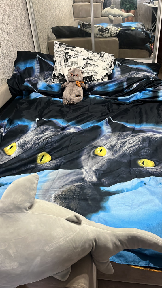 Ткань приятная на ощупь. Пододеяльник не соответствует размерам. При длине 215(+-2), он 208. Простынь не соответствует по ширине, при ширине 180(+-4), она 174. Наволочки соответствуют размерам, только рисунок совсем не соответствует фотографии.