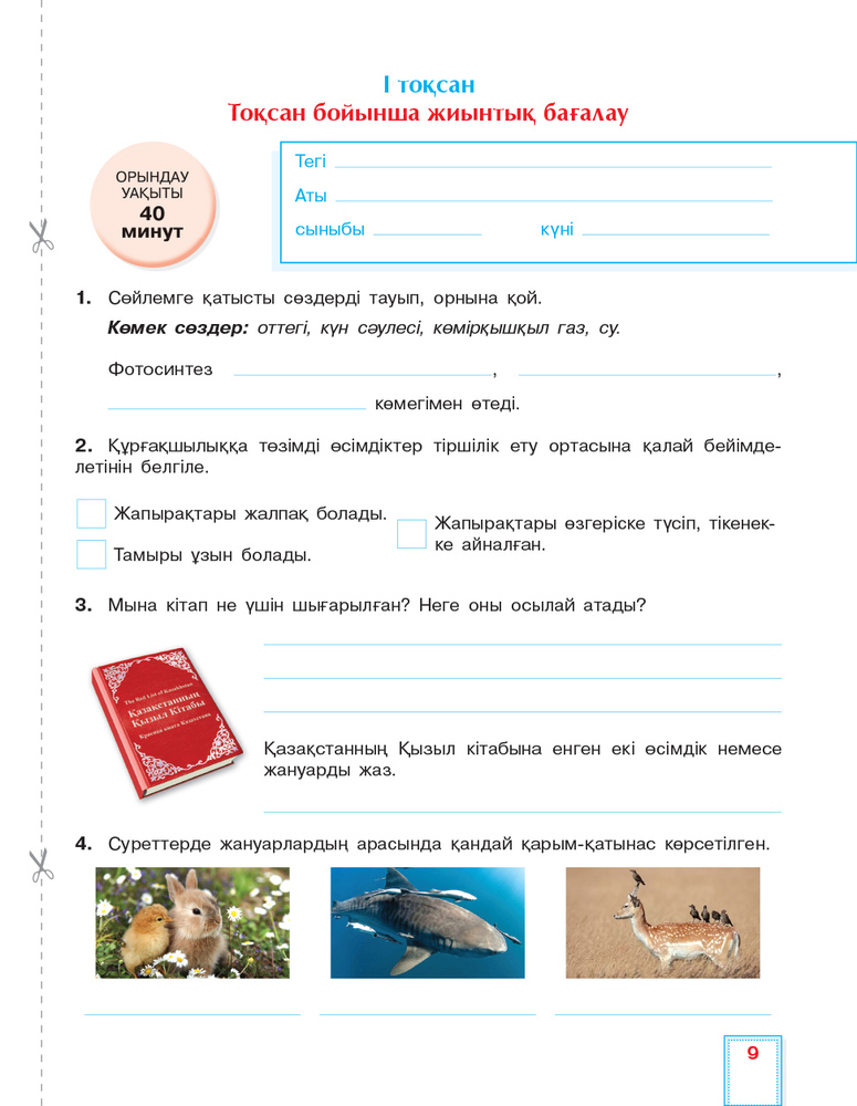 Жаратылыстану. Критериалды бағалау. Бөлімді жиынтық бағалау, тоқсандық жиынтық бағалау. 3 сынып+29