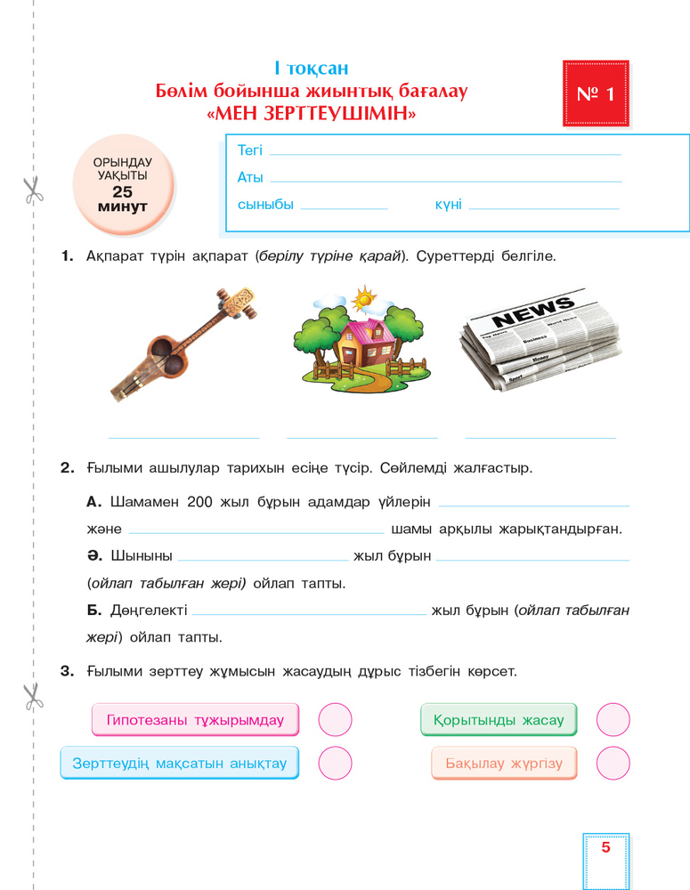 💳 Оплатить за товар можно при получении 🇰🇿 Есть бесплатная доставка по Казахстану от 1 дня 🎁 Копите бонусы с каждой покупки "Ұсынылып отырған құралда бастауыш сыныпта білім алатындарға критериальды (жиынтық) бағалауға арналған материалдар берілген. Жиынтық бағалау тоқсан бойында (олар тарау / бөлім бойынша немес өтілген тақырыптарға арналады (БЖБ), тоқсан соңында (тоқсандық жиынтық бағалау ТЖБ) жүргізіледі. |