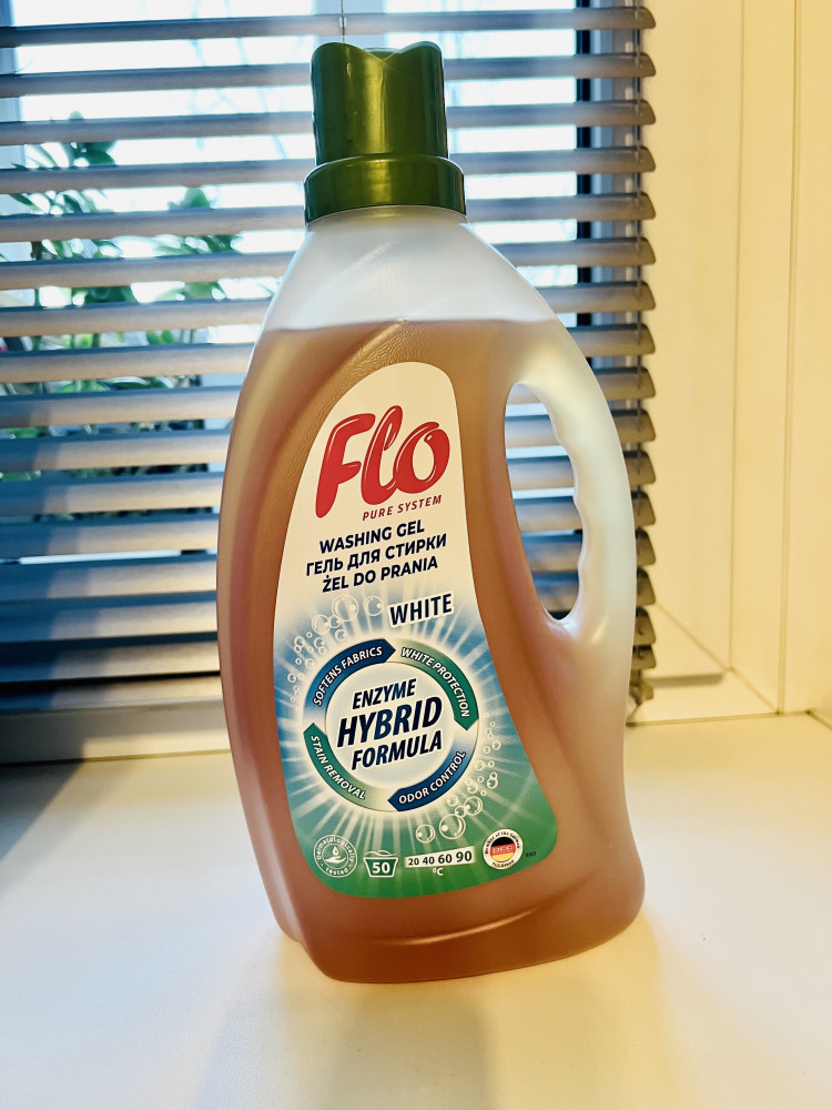 Flo Гель для стирки «Hybrid Formula White»+53 приятный запах эффективное отбеливание густая консистенция экономичный расход