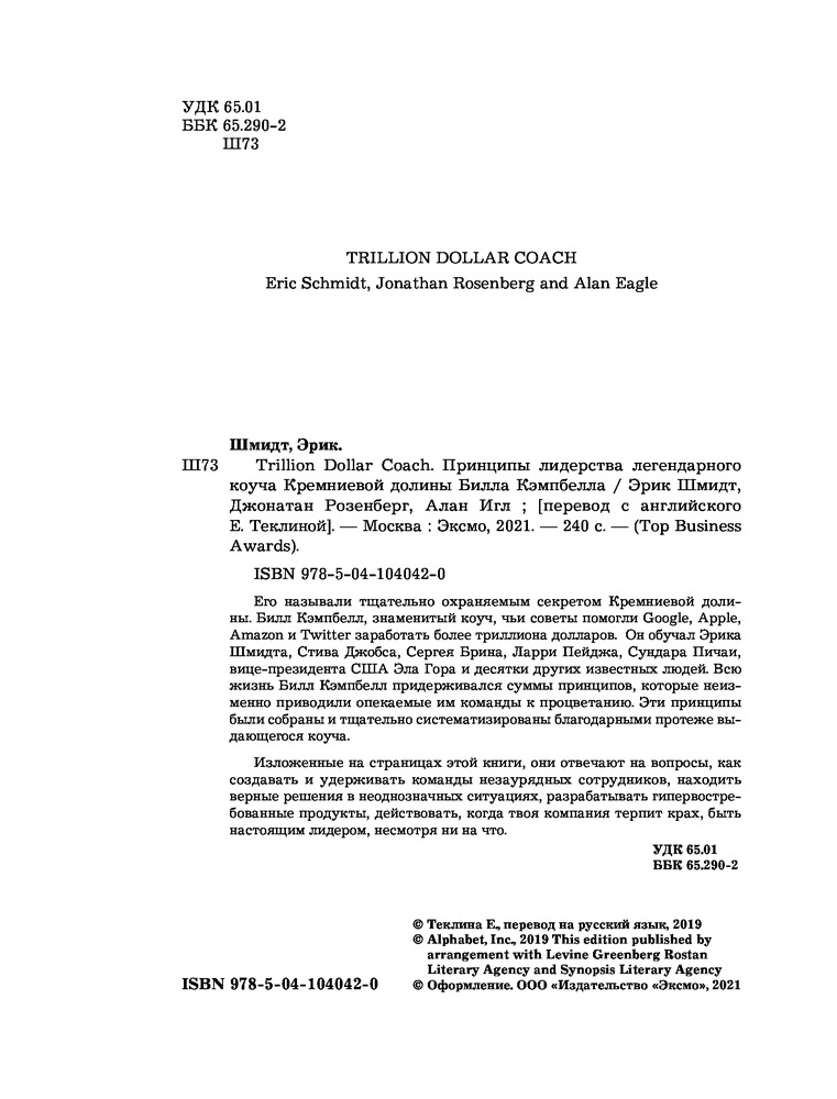 Trillion Dollar Coach. Принципы лидерства легендарного коуча Кремниевой долины Билла КэмпбеллаЭрик Шмидт, Джонатан Розенберг, Алан Игл -20% +333 командная работа легко читается оформление для руководителей
