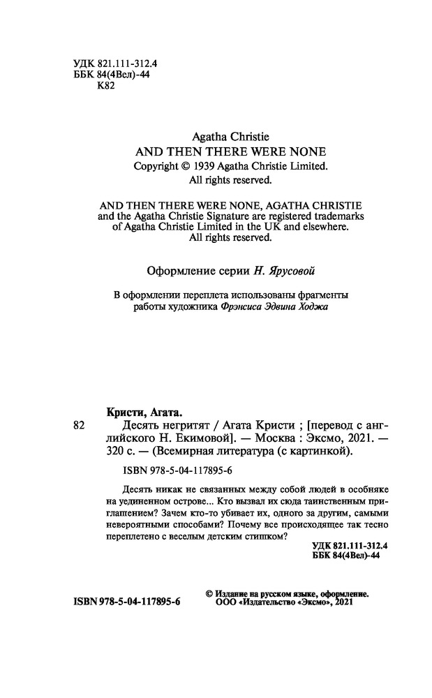 Десять негритят-20% +104 интригующий сюжет хорошее качество неожиданный финал