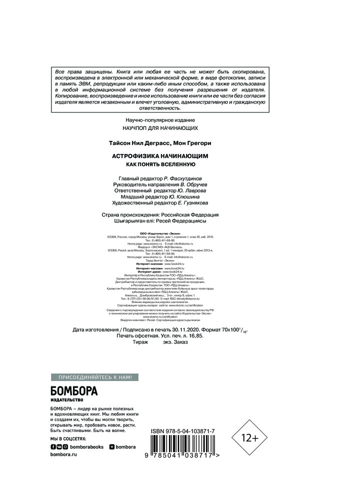 В данный момент этот товар отсутствует в продаже. Возможно, у нас найдется аналогичный или похожий товар здесь. Серия: Научпоп для начинающих В своей книге «Астрофизика начинающим: как понять Вселенную» знаменитый астрофизик и популяризатор науки Нил Деграсс Тайсон раскрывает все тайны большой физики, загадки нашей Вселенной и отвечает на множество вопросов о том как все устроено в нашем мире.