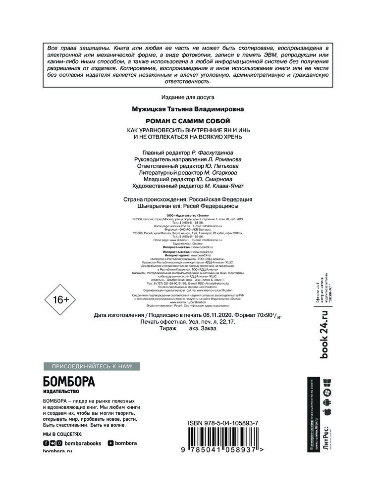Роман с самим собой. Как уравновесить внутренние ян и инь и не отвлекаться на всякую хрень-20% +209 легкая подача практические задания вдохновляющая глубокое содержание