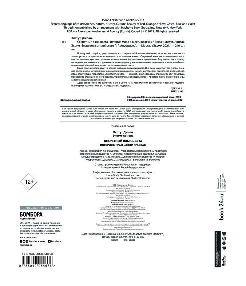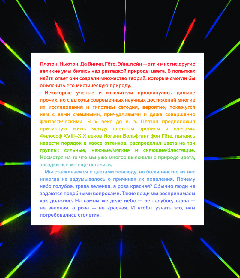 Секретный язык цвета. История мира в шести краскахВ данный момент этот товар отсутствует в продаже. Возможно, у нас найдется аналогичный или похожий товар здесь. Серия: Подарочные издания. Искусство Почему небо голубое, трава зеленая, а роза красная? Большинство из нас не знает, как ответить на эти вопросы, хотя цвет — наш спутник во всех аспектах жизни. «Секретный язык цвета» познакомит вас с шестью цветами: красным, зеленым, желтым, синим, фиолетовым и оранжевым. Вы узнаете, как и почему мы видим цвет, какова природа возникновения радуги, у каких животных есть цветовое зрение и поймете, как наш собственный язык влияет на возникновение цвета. |