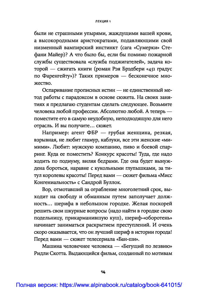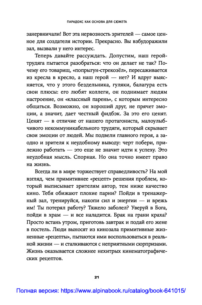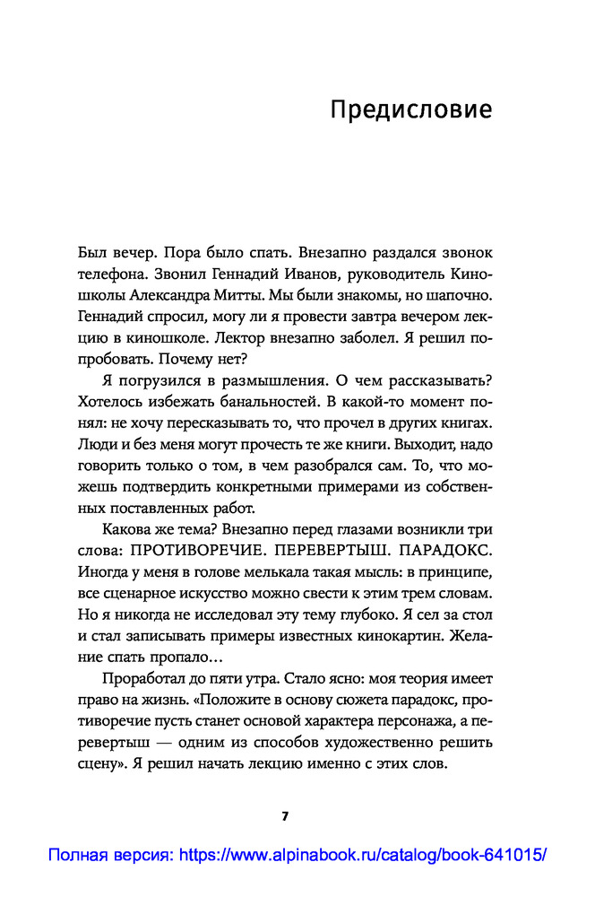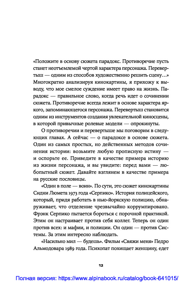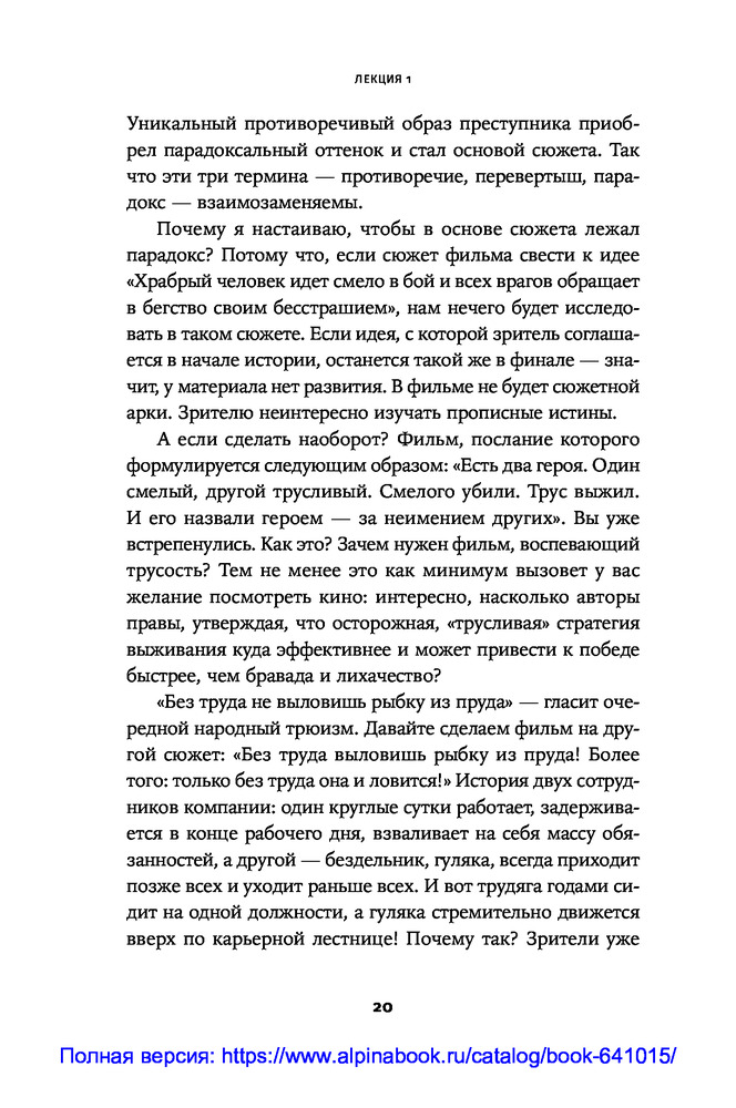 Противоречие. Перевертыш. Парадокс. Курс лекций по сценарному мастерствуВ данный момент этот товар отсутствует в продаже. Возможно, у нас найдется аналогичный или похожий товар здесь. Секрет зрительского успеха кинокартины кроется в трех словах: противоречие, перевертыш, парадокс. «Положите в основу сюжета парадокс. Противоречие пусть станет неотъемлемой чертой характера персонажа. Перевертыш — одним из способов художественно решить сцену...» ― говорит сценарист и преподаватель теории драматургии Олег Сироткин. |