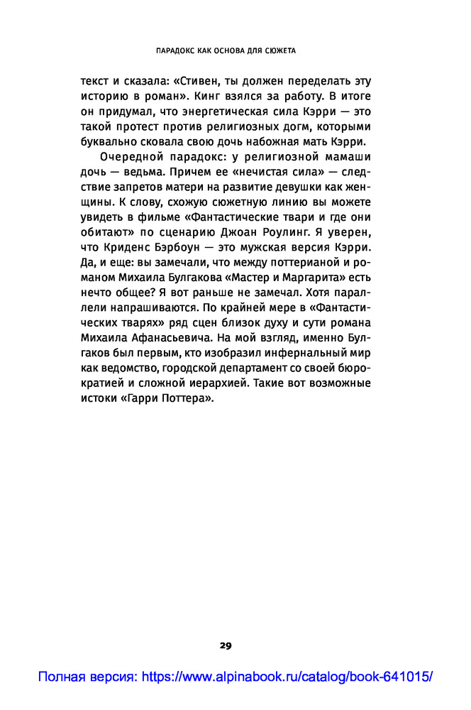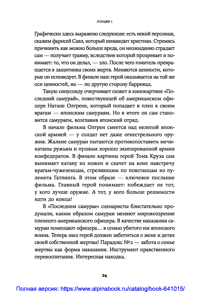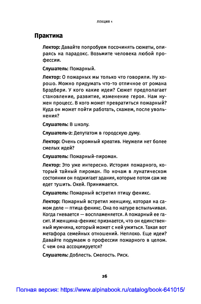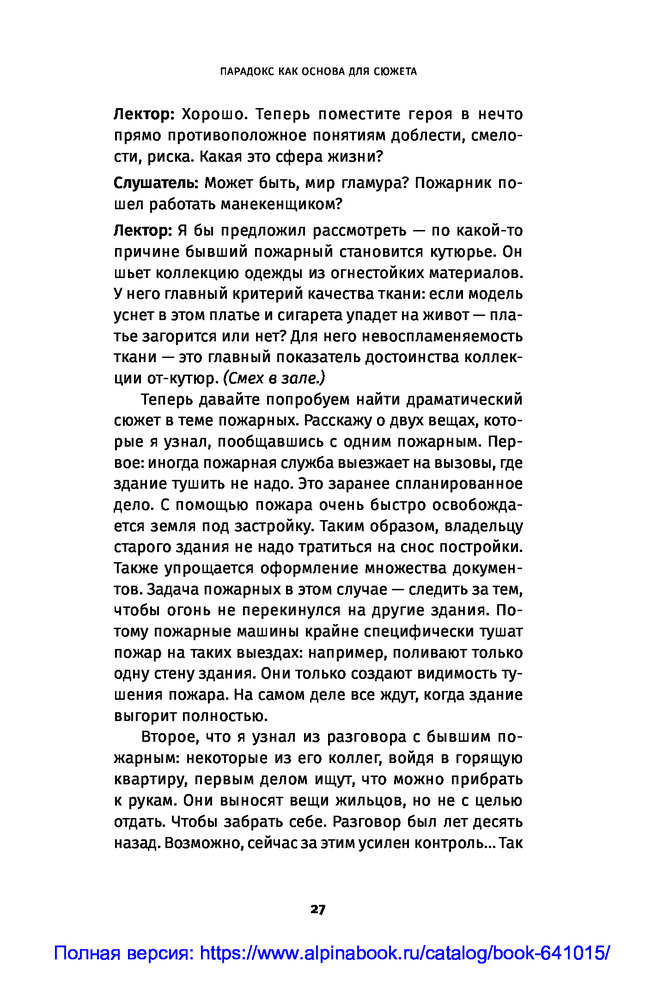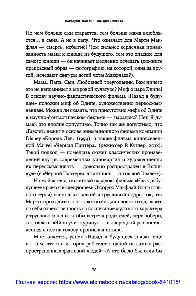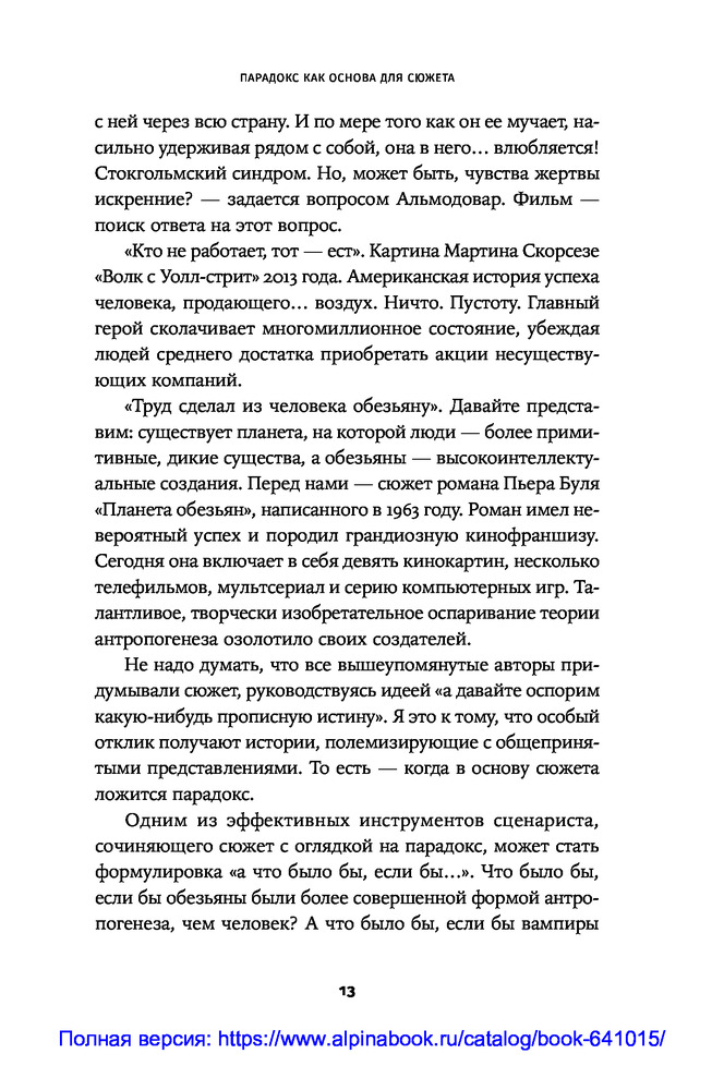 Противоречие. Перевертыш. Парадокс. Курс лекций по сценарному мастерствуВ данный момент этот товар отсутствует в продаже. Возможно, у нас найдется аналогичный или похожий товар здесь. Секрет зрительского успеха кинокартины кроется в трех словах: противоречие, перевертыш, парадокс. «Положите в основу сюжета парадокс. Противоречие пусть станет неотъемлемой чертой характера персонажа. Перевертыш — одним из способов художественно решить сцену...» ― говорит сценарист и преподаватель теории драматургии Олег Сироткин. |