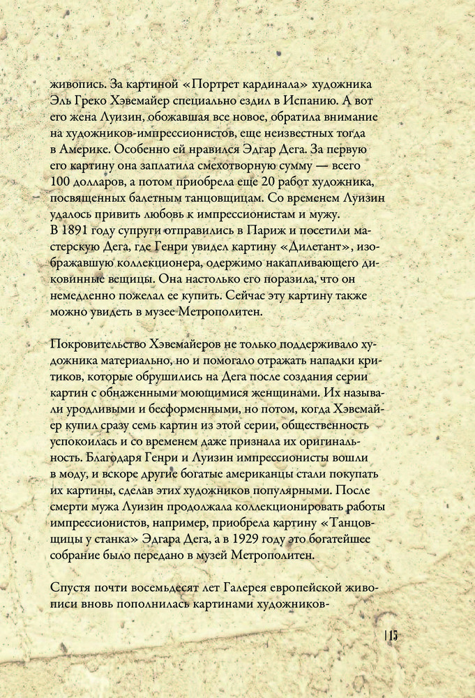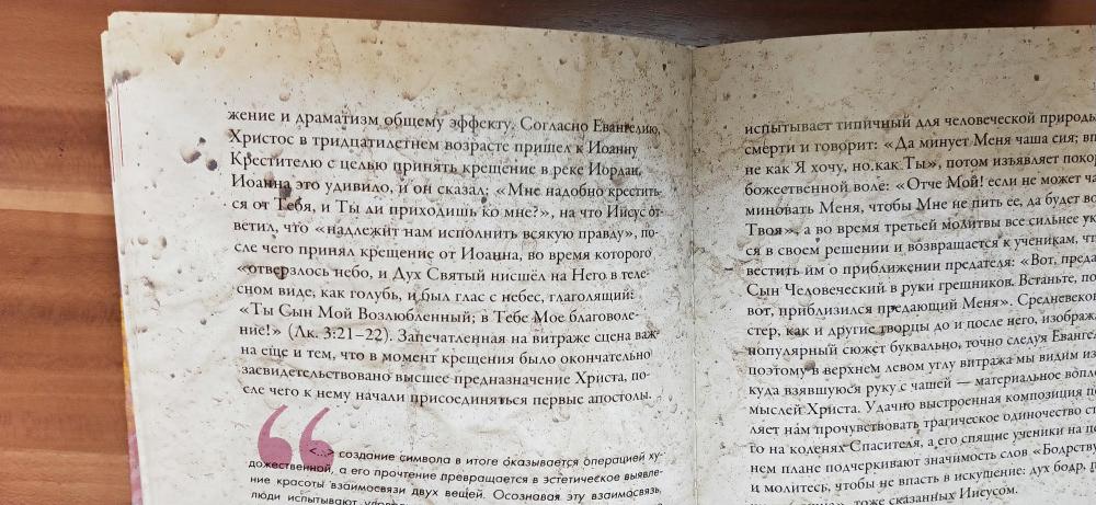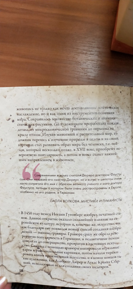 Посмотрите на оформление фона текста. Нет, я их не замарала, это такое видение иллюстраторов издательства. Приходится напрягать глаза, чтобы читать текст. Не советую брать эту книгу. Возможно про художников есть другие издания с читабельным текстом.