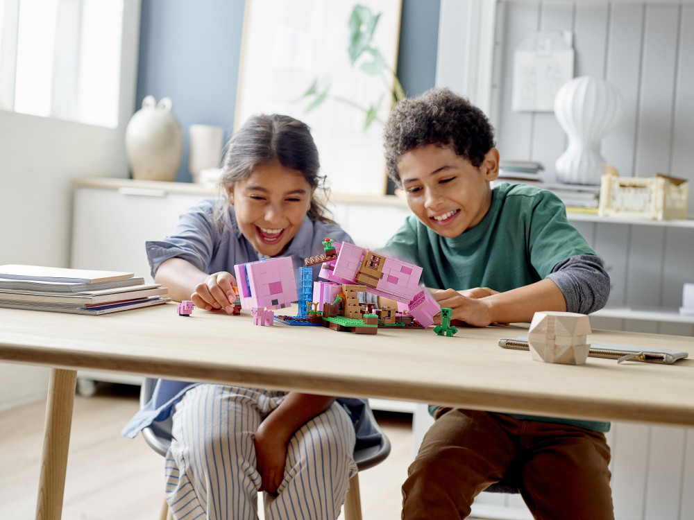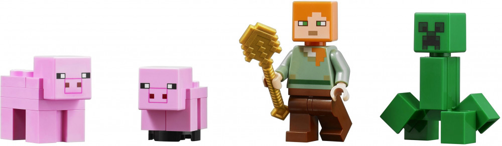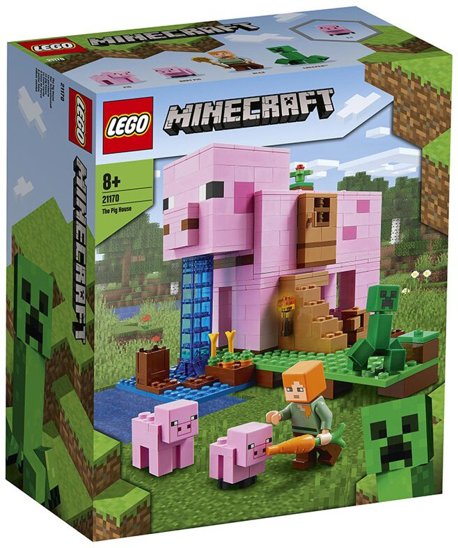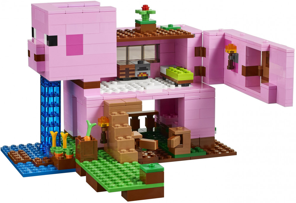 Порадуйте страстного игрока в Minecraft этим набором «Дом-свинья Lego Minecraft». Веселье, творческий подход и приключения из Minecraft c универсальностью игрушки Lego. Настоящий набор для сборки Lego Minecraft включает популярного персонажа из игры Алекс, знаменитого крипера, двух свиней, аксессуары для Алекс и морковку для свиней. Дети используют полученные в Minecraft навыки, чтобы собрать дом в форме свиньи, открыть его с одной стороны и снять крышу, изучая скрытые комнаты, спрятаться от крипера, ухаживать за свиньями — и обрушить весь дом мощным взрывом!