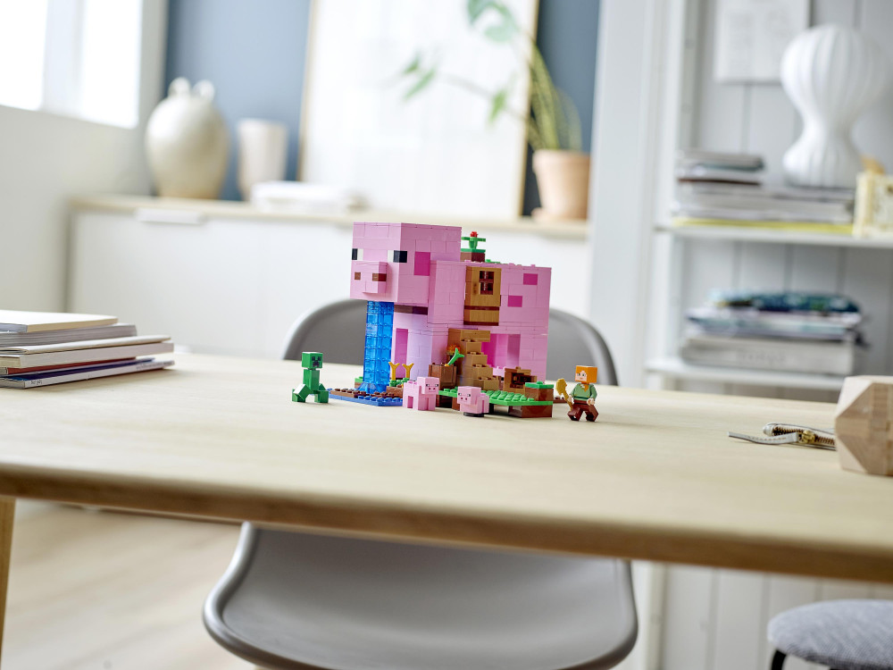 В данный момент этот товар отсутствует в продаже. Возможно, у нас найдется аналогичный или похожий товар здесь. Серия: LEGO Minecraft Используйте свое мастерство Minecraft, чтобы построить дом в виде гигантской свиньи! Одна боковая стена раскрывается, являя взору большую комнату, а крыша снимается, открывая маленькую комнату в свиной голове. Исследуйте интерьер вместе с Алекс, но берегитесь крипера! Хотите поменять обстановку? Переместите комнату в голове в другое место. Решили полностью все изменить? Используйте функцию взрыва, чтобы разнести модель на кусочки!