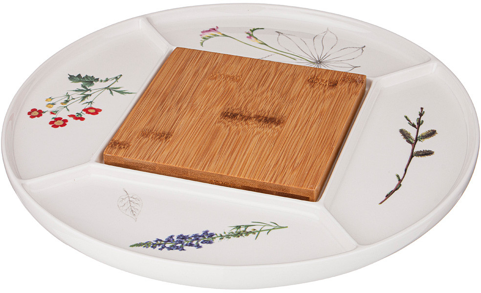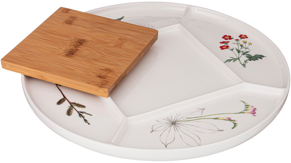 💳 Оплатить за товар можно при получении 🇰🇿 Есть бесплатная доставка по Казахстану от 1 дня 🎁 Копите бонусы с каждой покупки Серия: Meadow Менажница выполнена из высококачественного фарфора с 4-мя секциями и деревянной доской. Менажница прекрасно подходит для сервировки орешков, закусок, оливок, сладостей и благодаря необычному дизайну украсит любой стол. |