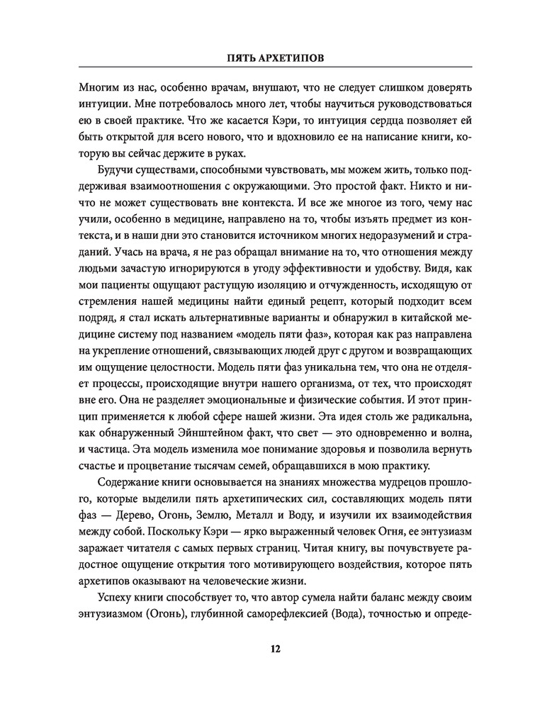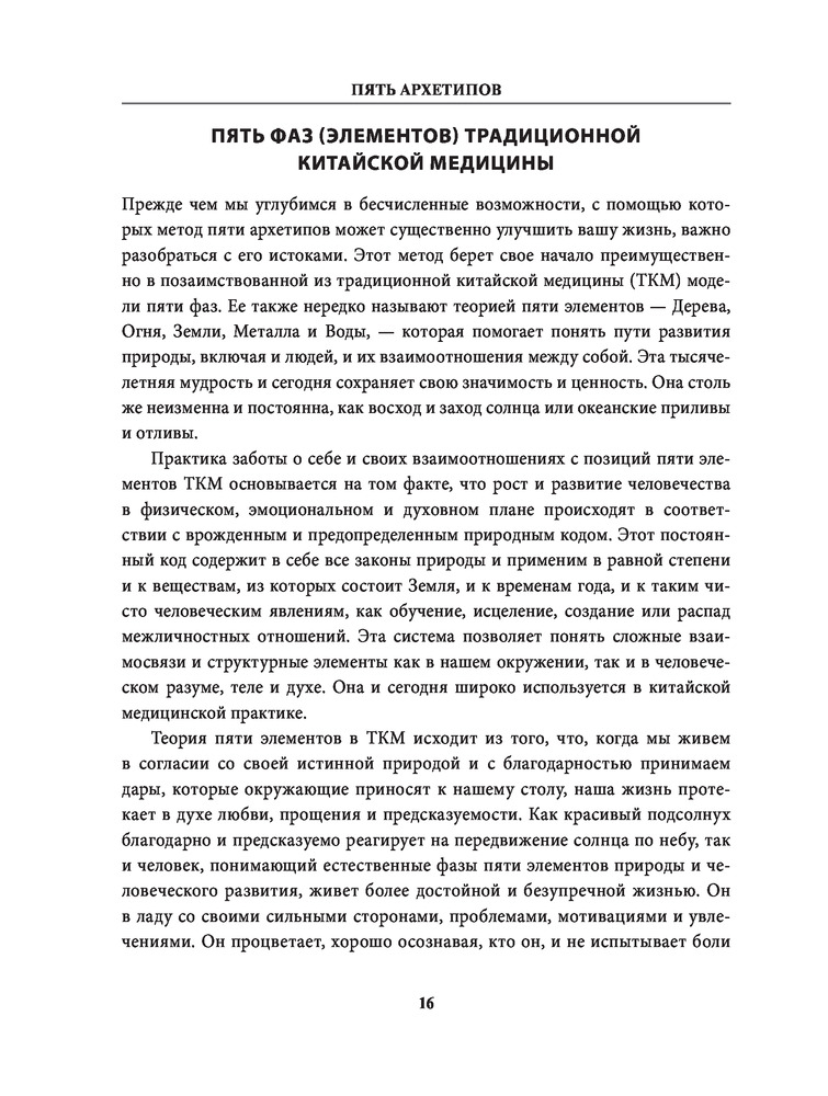 5 архетипов. Дерево. Огонь. Земля. Металл. Вода. Как определить свою истинную природуВ данный момент этот товар отсутствует в продаже. Возможно, у нас найдется аналогичный или похожий товар здесь. Прежде чем мы углубимся в бесчисленные возможности, с помощью которых метод пяти архетипов может существенно улучшить вашу жизнь, важно разобраться с его истоками. Этот метод берет свое начало преимущественно в позаимствованной из традиционной китайской медицины (ТКМ) модели пяти фаз. Ее также нередко называют теорией пяти элементов — Дерева, Огня, Земли, Металла и Воды, — которая помогает понять пути развития природы, включая и людей, и их взаимоотношения между собой. Эта тысячелетняя мудрость и сегодня сохраняет свою значимость и ценность. |