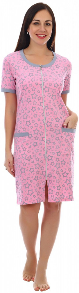 Халатик идет по размеру, чуть ниже колен (мой рост 170) , трикотаж качественный, думаю даже замок будет хорошо лежать, понравился, цена соответствует. Спасибо магазину!