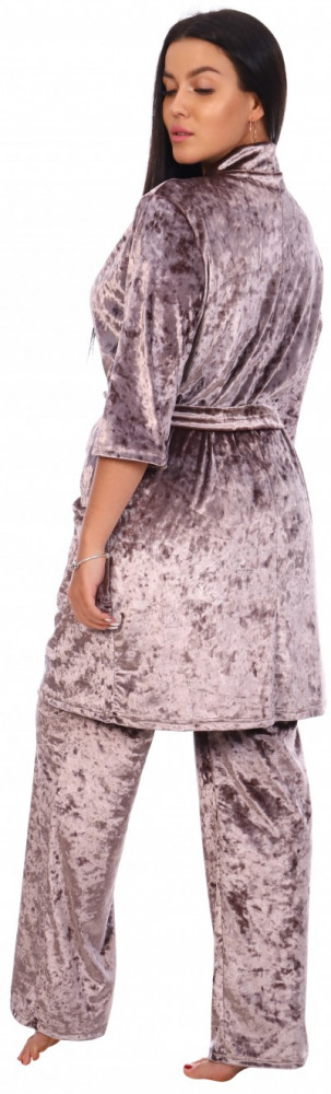 В целом отличный Домашний костюм ,довольно плотная ткань хорошо лег по фигуре,полы халата не расходятся при носке,очень удобный.цвет пудра отличный!!!на свой верх 56-58 взяла 60 р-р