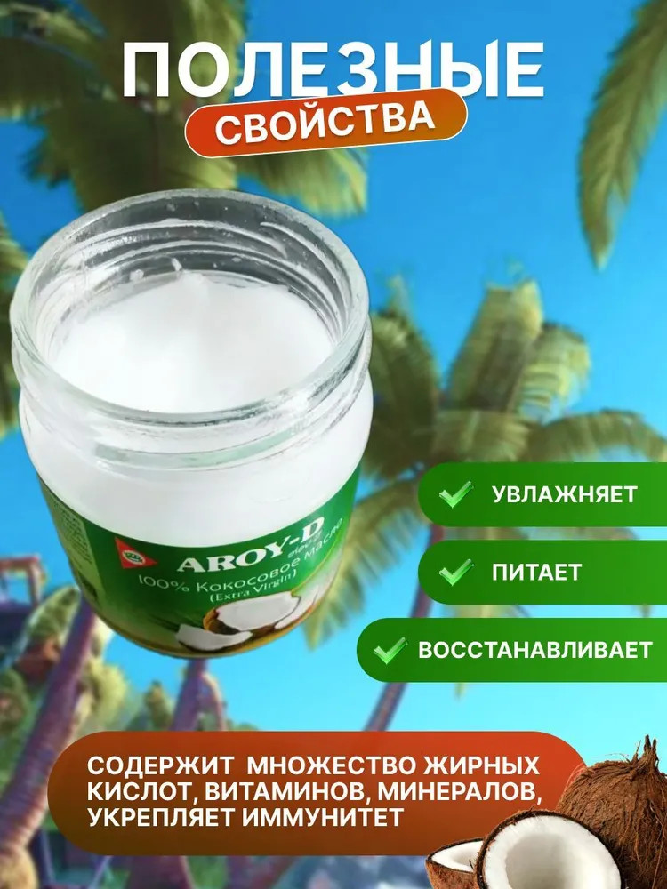 Aroy-D Масло кокосовое-20% +72 приятный вкус выраженный аромат натуральный состав для полоскания