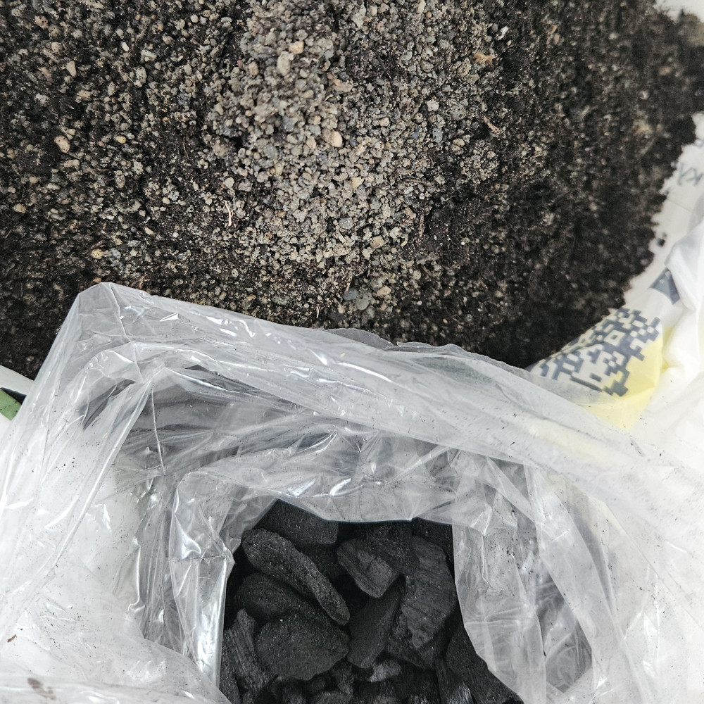 грунт можно смешивать в разных пропорциях, на дно горшка насыпала дренаж (не входит в состав грунта, покупала отдельно) мох,песок и грунт смешала в нужных мне пропорциях, уголь в упаковке в отдельном пакете, что очень удобно!