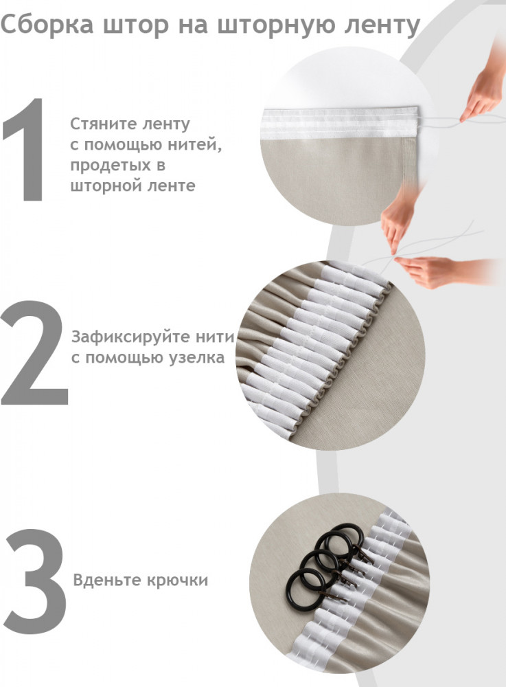 Шторы отличного качества, свет не пропускают. Смотрится очень красиво, тюль брали этой же фирмы. Все отлично упаковано. Материал тюля и штор плотный, без затяжек. Лента отлично пришита. Только длину подшили сами.