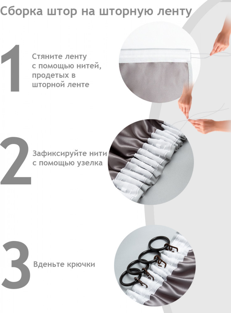 Штора очень красивая, плотная. Лента крепления пришита высоко, крючки провисают, но это не критично.