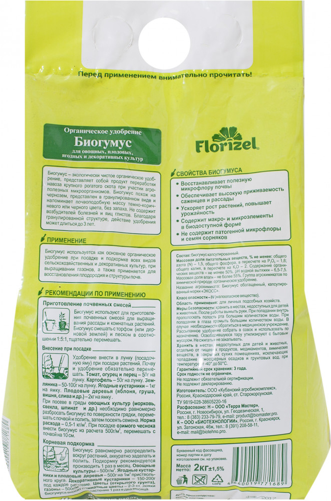 Florizel Удобрение «Биогумус»+49 универсальное для рассады гранулы соответствует описанию для торфогрунта срок годности