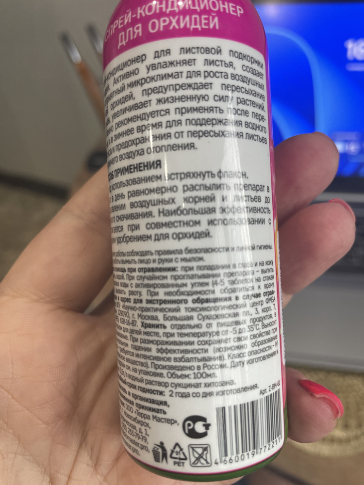 💳 Оплатить за товар можно при получении 🇰🇿 Есть бесплатная доставка по Казахстану от 1 дня 🎁 Копите бонусы с каждой покупки Спрей-кондиционер для листовой подкормки орхидей. Активно увлажняет листья, cоздает благоприятный микроклимат для роста воздушных корней орхидей, предупреждает пересыхание листьев, увеличивает жизненную силу растения. Особенно рекомендуется применять после пересадки и в зимнее время для поддержания водного баланса и предохранения от пересыхания листьев от горячего воздуха отопления. |