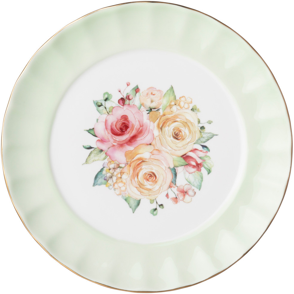 Очень красивые тарелочки с нежным рисунком. Практичны в использовании за счет приподнятых краев(не плоские). Два таких набора будут великолепно смотреться на праздничном столе.