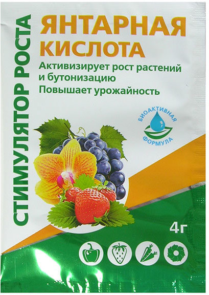 Янтарная кислота практически универсальна: она улучшает свойства почвы, нормализуя ее микрофлору, стимулирует развитие и рост растений, помогает им усваивать питательные вещества, усиливает иммунитет, увеличивает всхожесть сельскохозяйственных культур, повышает приживаемость рассады и даже возвращает к жизни увядшие комнатные цветы.